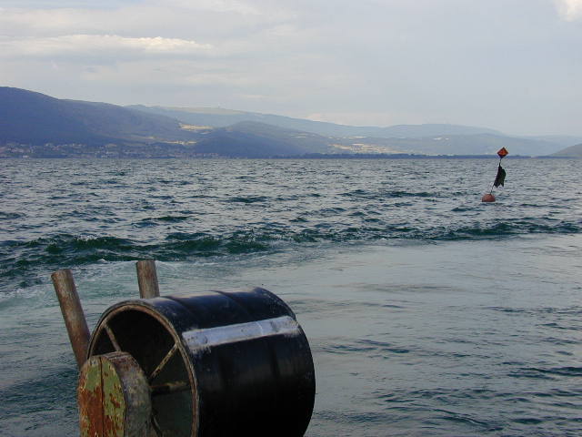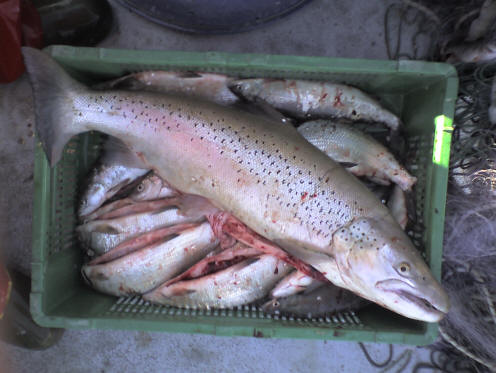 Les flotteurs (liège,4 à 5 par filet) sont régulièrement attachés sur le dessus du filet. Ils servent à maintenir le filet à la profondeur que le pêcheur désire. En mai, les filets sont mis à environ 50cm sous la surface pour finir en octobre à plus de 15 brasses de profondeur. 1 brasse = 180cm environ