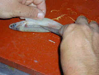 Il reste encore des arrêtes sur la partie du ventre qu'il faut enlever |