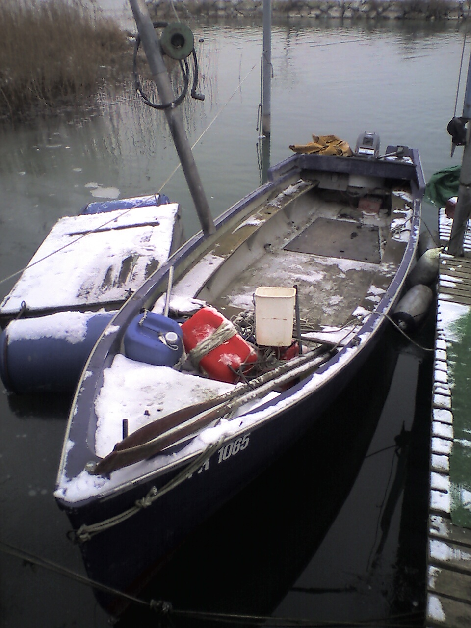 Petit bateau en alu servant à la pêche aux brochets à l'intérieur des roselières |